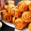 Противень застилаем бумагой для выпекания, кладем два рулета из теста. Оставляем заготовки выпечки под полотенцем на 20 минут.