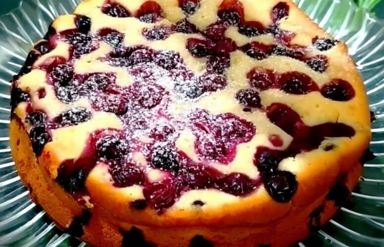 Пирог на кефире с вишней: вчера испекла, сегодня второй попросили. Все смешали и в духовку