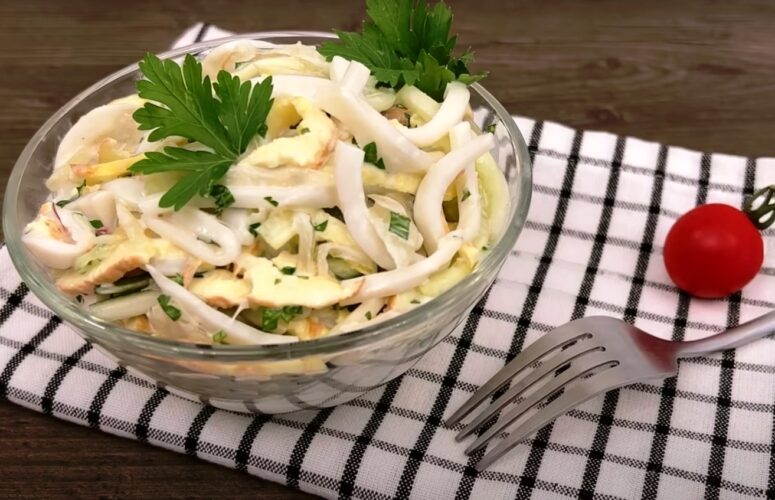 Ему нет равных по вкусу. Лучший праздничный салат с кальмарами