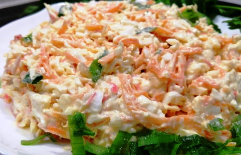 Салат “Моментальный». Ленивый рецепт с крабовыми палочками: всегда выручает, когда гости на пороге