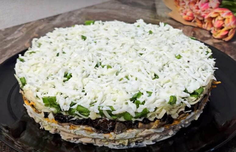 «Грибы под шубой». Готовится без мяса, а получается очень вкусно: многослойный салат на праздник