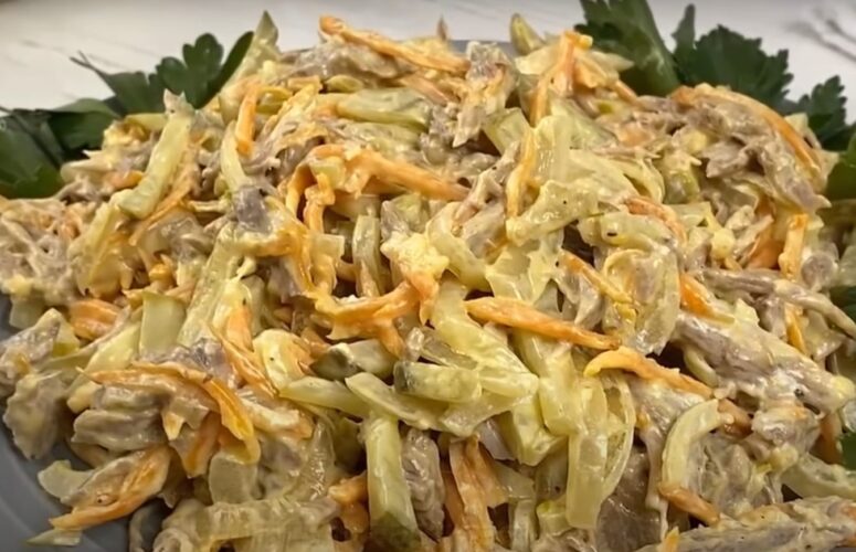 Всегда готовили на праздники в советское время. Салат «Обжорка», очень вкусный и сытный