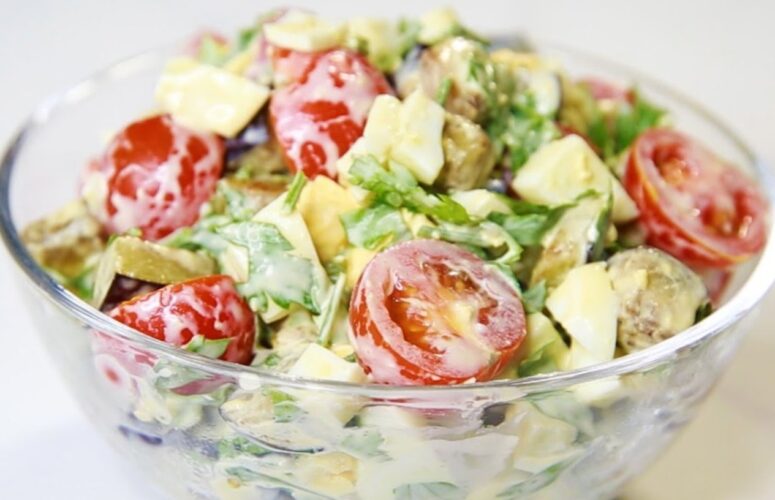 Не затеряется на столе. По-настоящему летний и вкусный: лёгкий салат с баклажанами