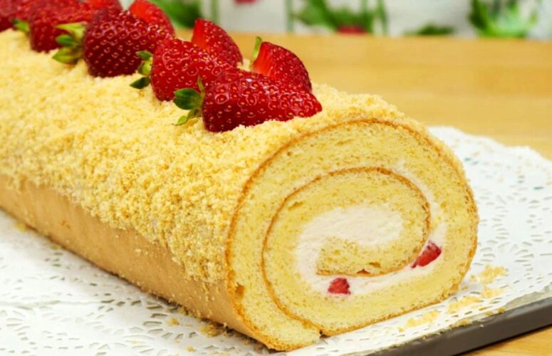 Бисквитный рулет с клубникой. Самый удачный рецепт: не ломается и легко сворачивается