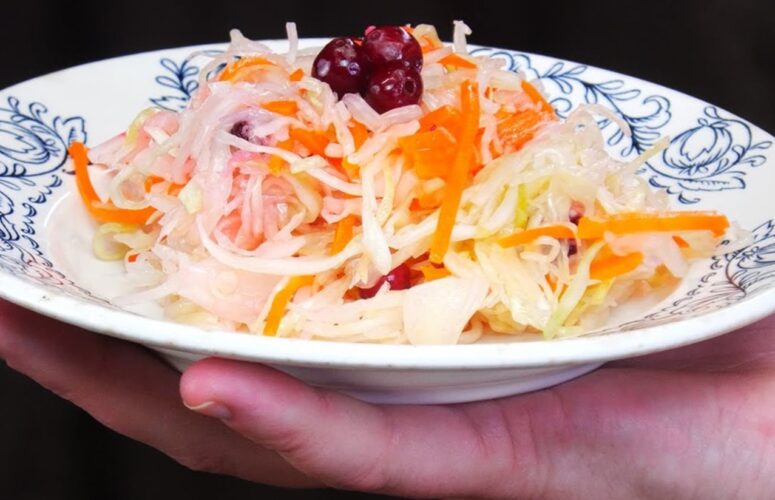 Салат из свежей капусты. Тот самый, как в советской столовой: с брусникой или клюквой