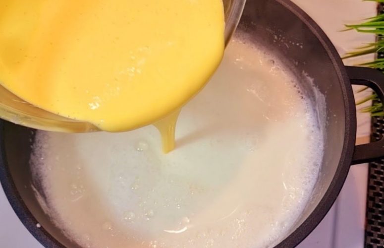 Влейте яйцо с кипящее молоко. Натуральное дополнение к бутербродам всего из 3-х ингредиентов