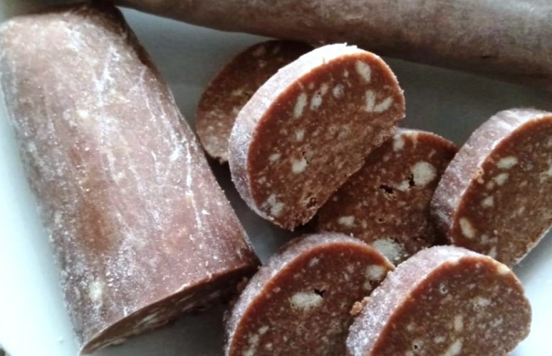 Десерт из детства – шоколадная колбаса. Мой рецепт: вкусная, нежирная и недорогая, потому что масла мало
