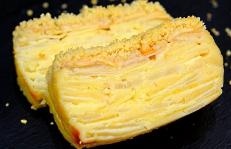 Видите тесто? При выпечке оно превращается в крем. Пирог невидимка с яблоками и грушами