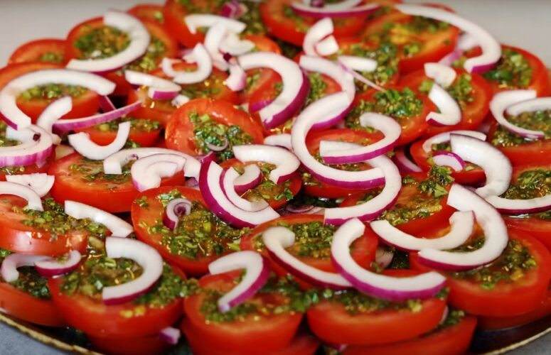 Слоёный салат из помидоров. Просто, вкусно и красиво: идеальная праздничная закуска