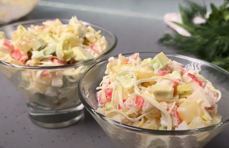 Салат «Новинка» с крабовыми палочками — рецепт всего из 4 продуктов. Варить ничего не надо