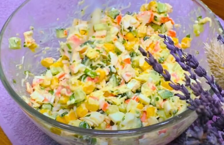 Удивите гостей за 5 минут: новый салат с крабовыми палочками и пикантной заправкой. Просто и невероятно вкусно!