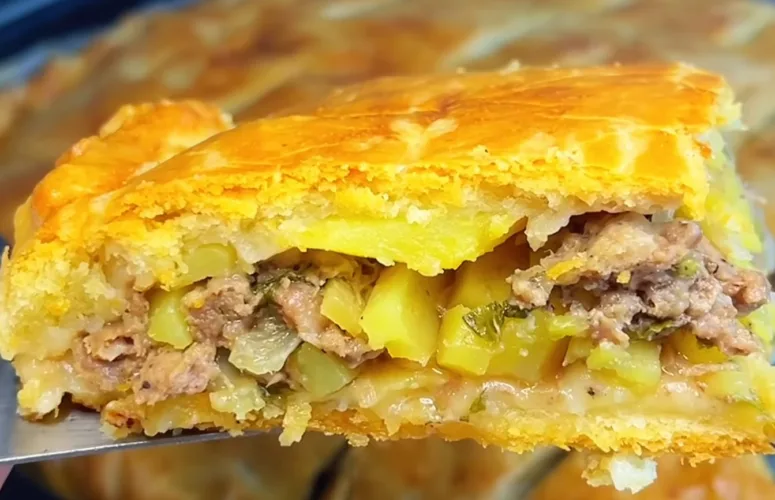Тесто больше не раскатываю: готовлю сочный слоеный пирог с мясом и картошкой «ленивым» способом