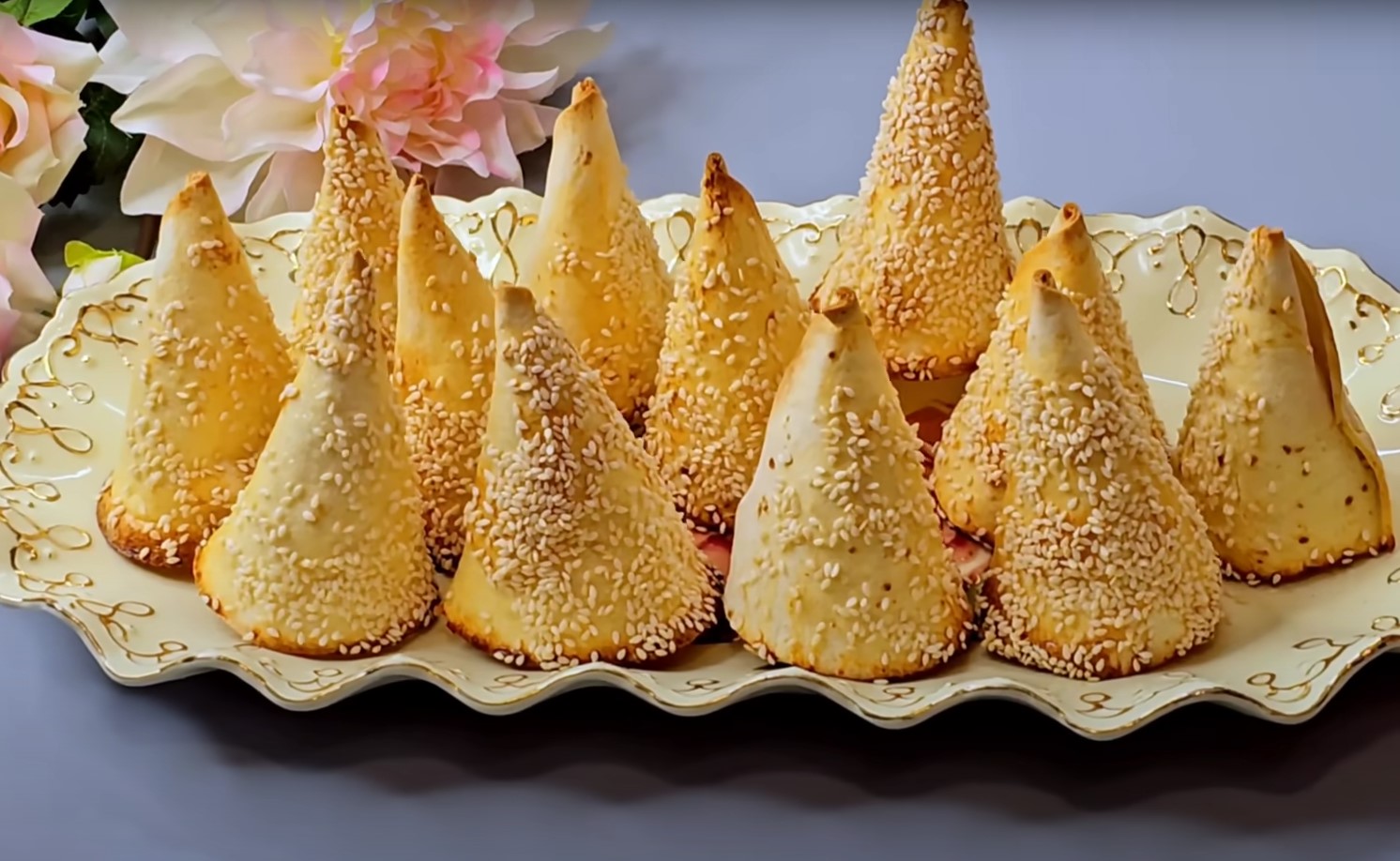 Смазываем конусы яйцом, посыпаем кунжутом по желанию и запекаем при 180 градусах 10 минут.