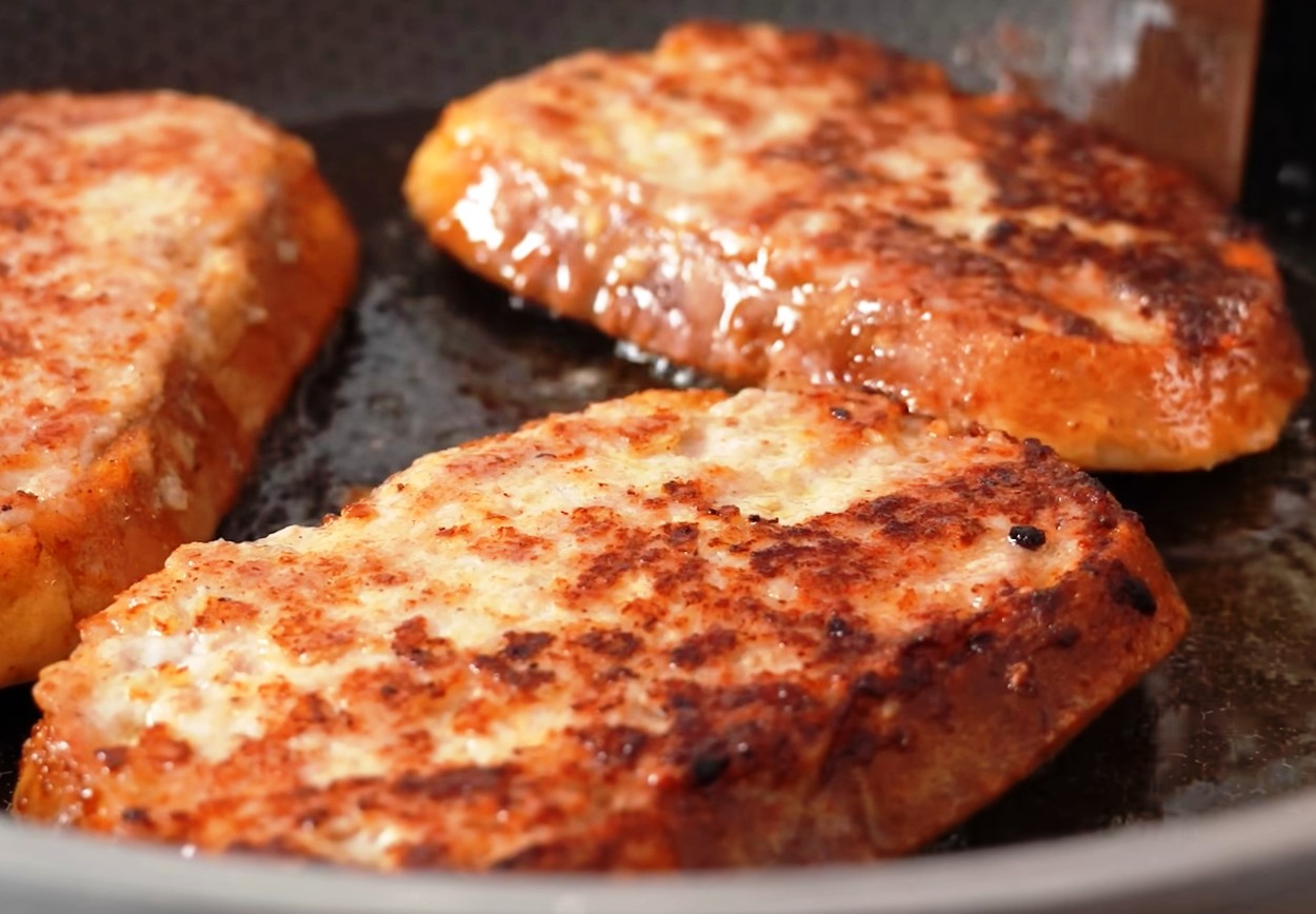 Взбиваем яйца с солью и молоком. Обволакиваем каждый бутерброд в яичной смеси и выкладываем на сковороду.