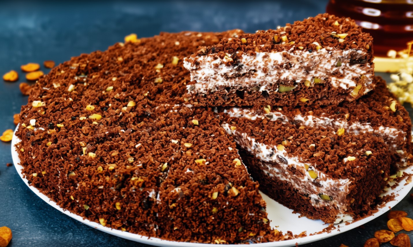 Яйца смешиваем с солью, сметаной и сахаром до однородности. Просеиваем в смесь какао, перемешиваем. Нарезаем мелко грецкие орехи.