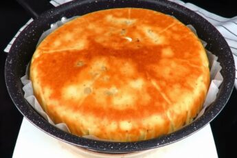 Обжариваем яичный блин с обеих сторон до золотистого цвета. Обжариваем аналогично еще пару блинов, делим их надвое и нарезаем тонкой соломкой.