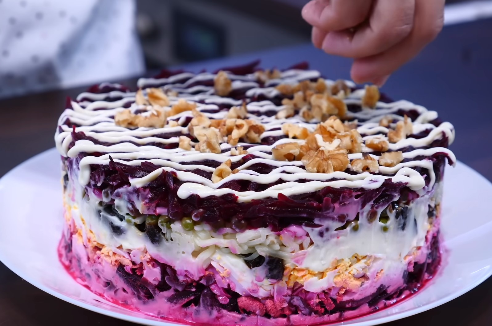 Расскажем, как приготовить вкусный праздничный салат со свеклой, который может храниться в холодильнике до 7 дней.
