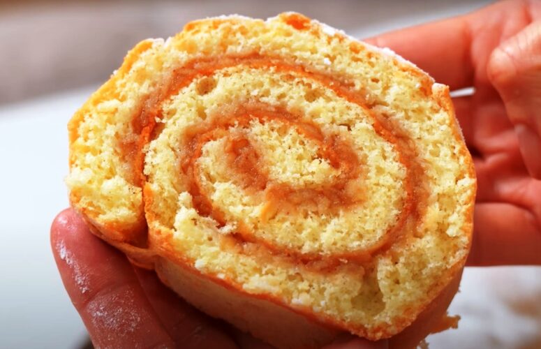 Мягкий ароматный рулет с яблочной начинкой. Рецепт за 15 минут