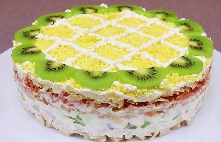 Блюдо моей мечты. Вкуснейший слоеный салат с курицей и киви: удачное сочетание ингредиентов