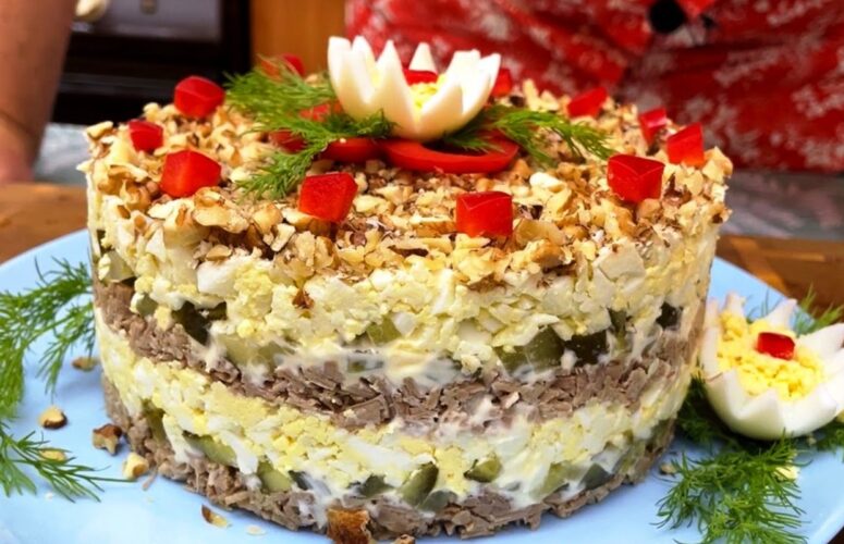 Салат «Неженка» с ветчиной. Минимум времени для приготовления: подойдёт для любого торжества