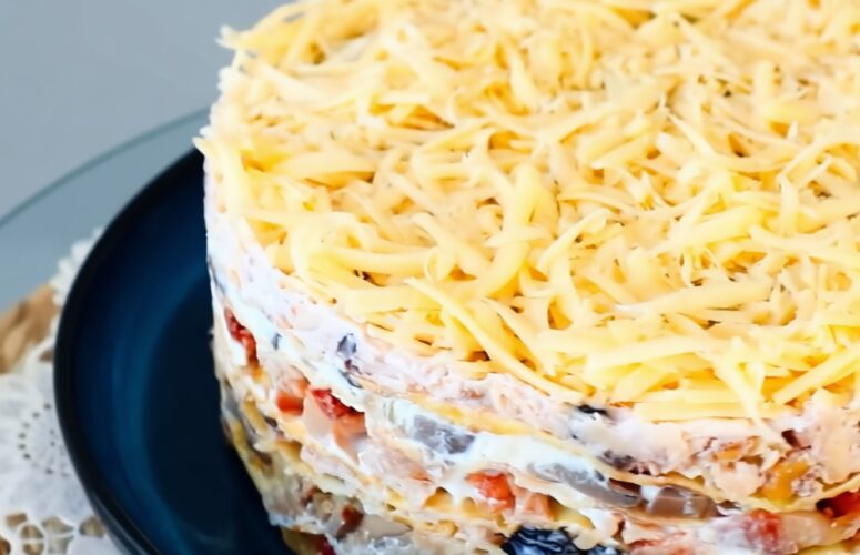 Новогодний шедевр из недорогих продуктов. Сочный и нежный закусочный торт!