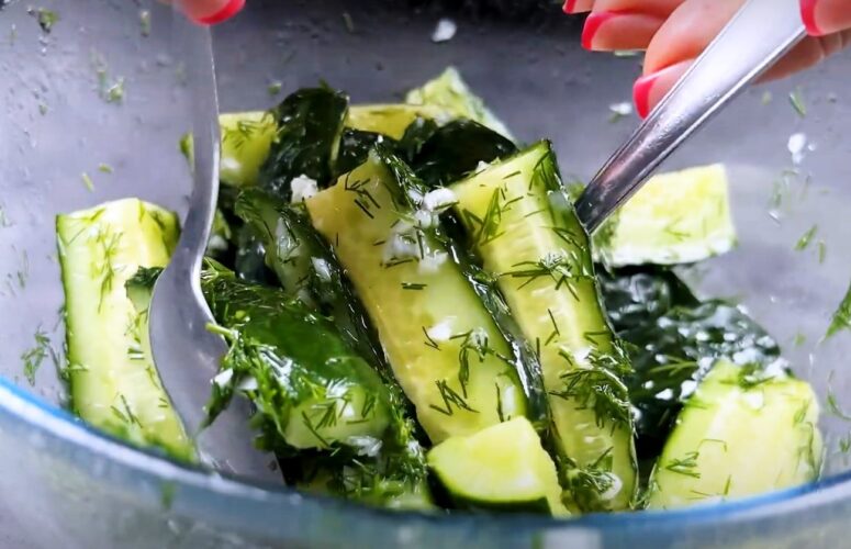 Готовлю 5 порций и убираю в холодильник: через 3 часа всё готово. Намного вкуснее, чем малосольные огурцы