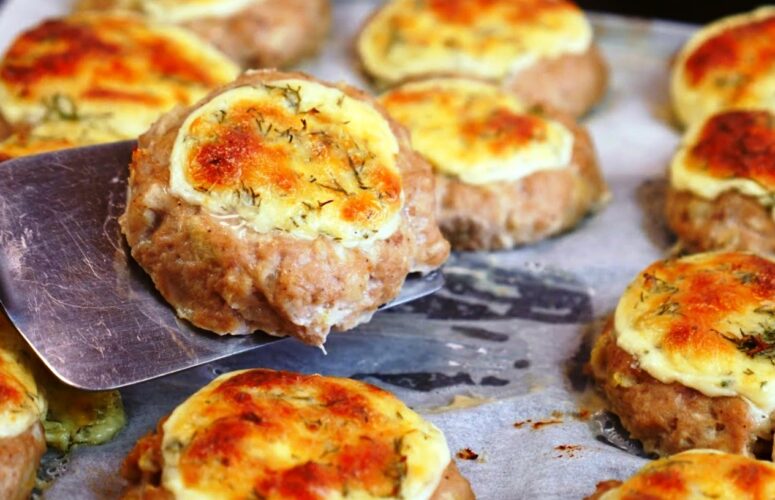 «Ватрушки» — котлеты с припёком, целый противень в духовке.. Вкусная сырная начинка: без масла