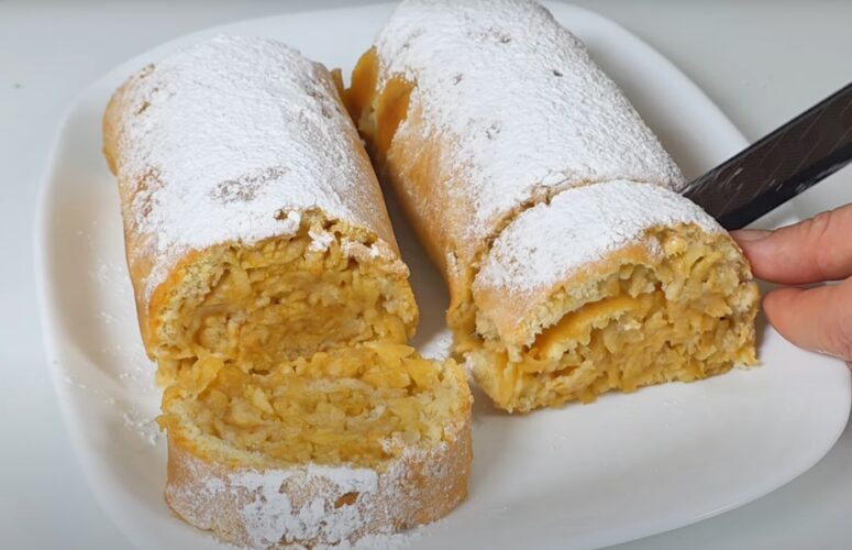 Готовлю пока сезон: сочный яблочный рулет. Домашняя выпечка на праздничный стол!