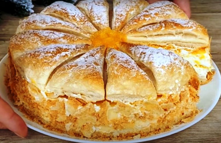 Рецепт просят все. Мягкий торт со слоеным тестом и ароматным сливочным кремом