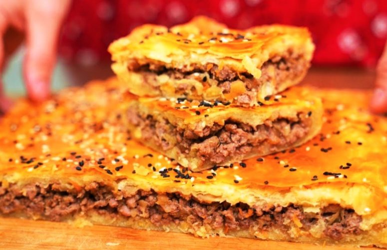 Пирог с фаршем на простом слоеном тесте. Ароматный и аппетитный