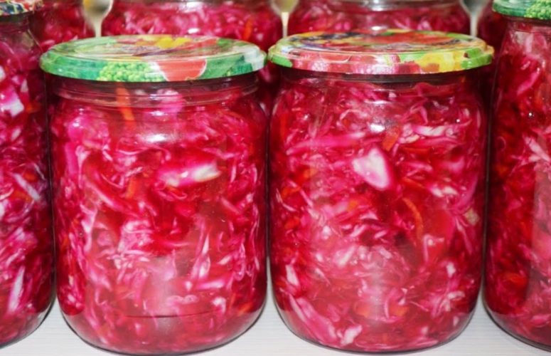 Яркий и хрустящий салат на зиму из банальной капусты. Рецепт легкий в приготовлении