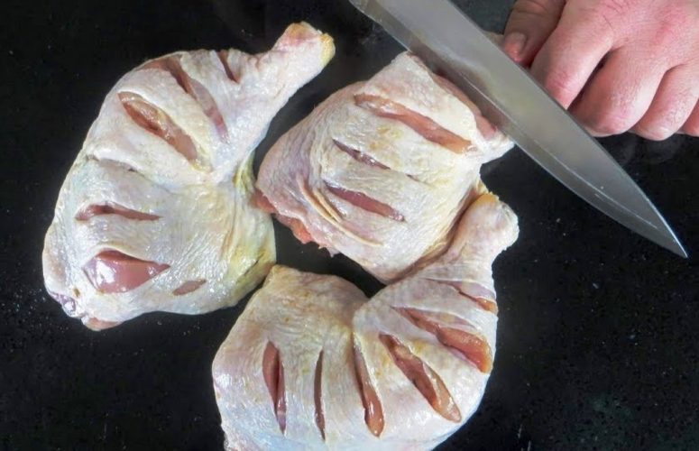 Превращаем обычные куриные окорочка в шашлык на сковороде: маринуем, а потом жарим на луке