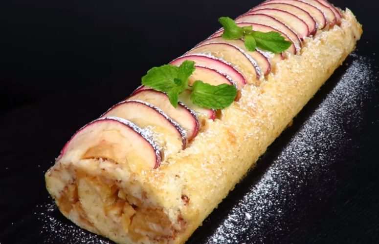 Ленивый рулет с яблоками за 15 минут. Тает во рту, быстрая выпечка к чаю