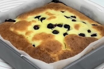 Высыпаем в смесь муку, разрыхлитель и соль, замешиваем тесто. Выкладываем тесто в форму для выпекания, застеленную пергаментом.