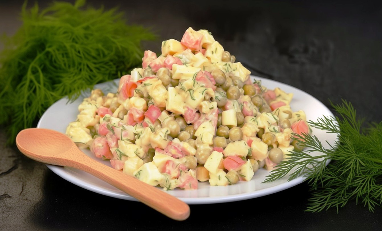 Получается простой вкусный салат, который заменит надоевший “Оливье” на праздничном столе.