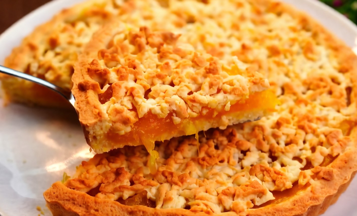 Натираем маленький остаток теста на крупной терке, посыпаем верхушку пирога. Выпекаем пирог при 180 градусах 30-35 минут.