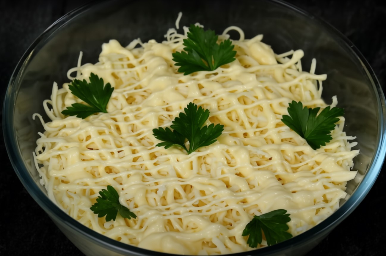 Сытность салатам придают сыры и яйца. Они делают вкус салата более сливочным и нежным. В дополнение к основным ингредиентам в слои блюда выкладываются овощи и даже фрукты.