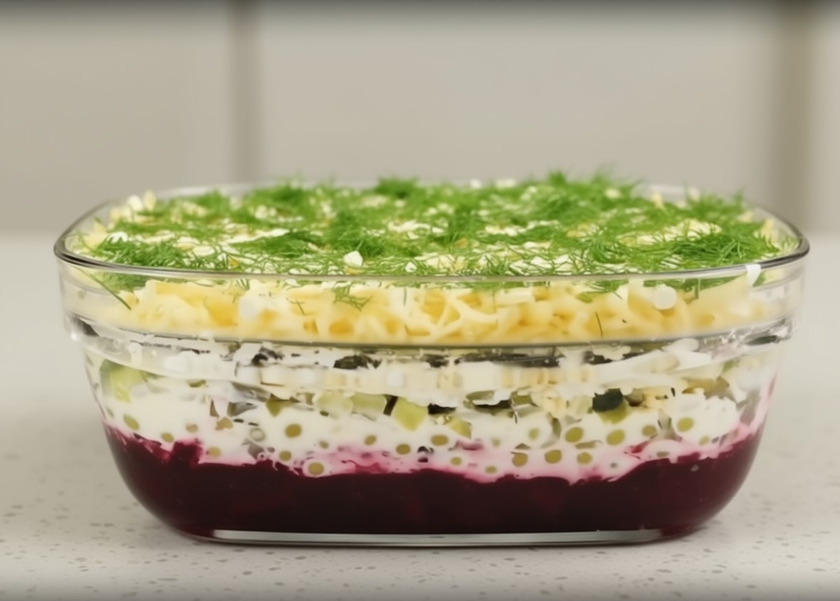 Отдаленно данный салат напоминает “Сельдь по шубой”, благодаря сочетанию свеклы с яйцами и майонезом. Однако, это более бюджетный вариант этого блюда.