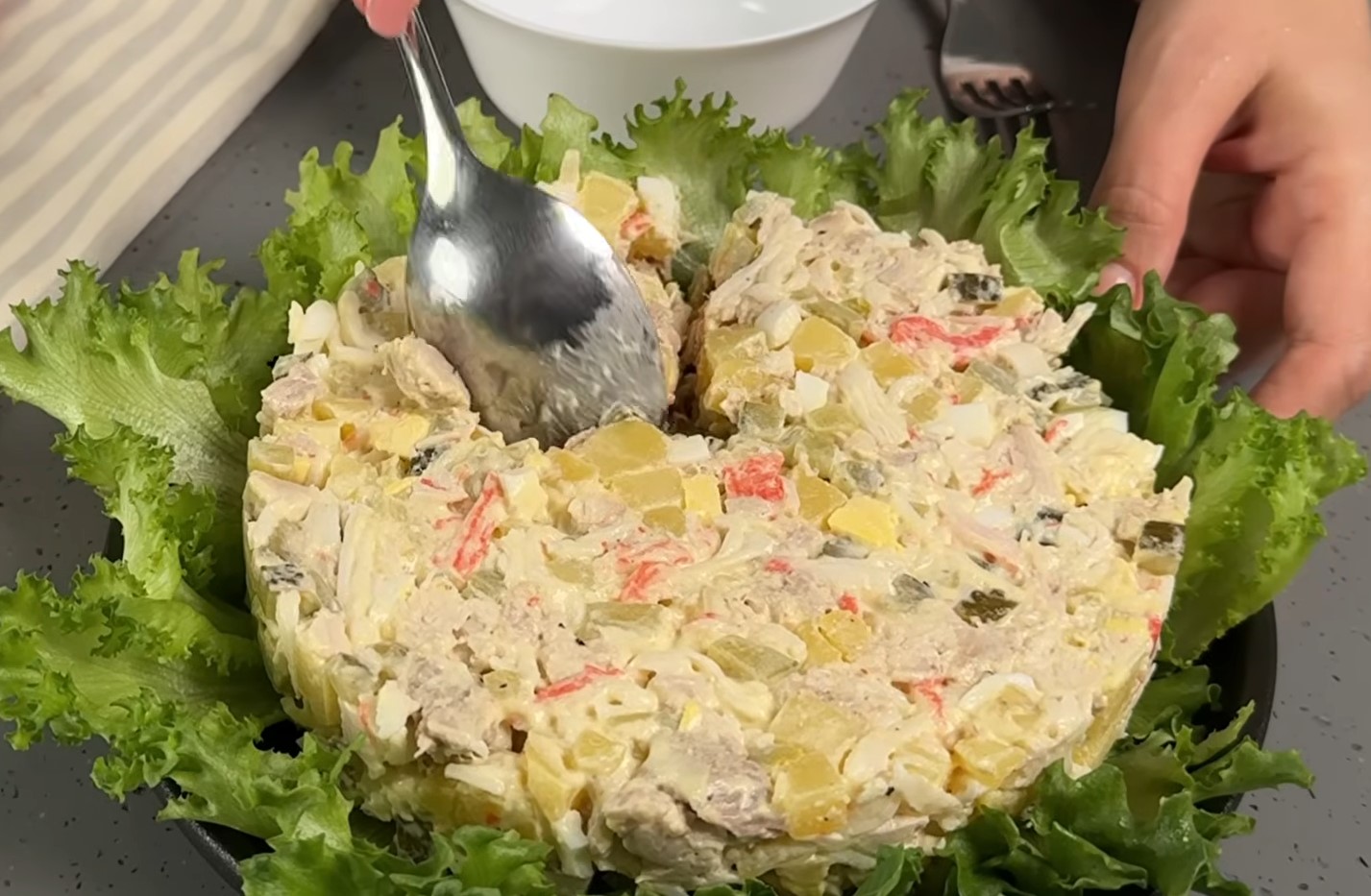 Салат настолько понравился людям, что вскоре стал продаваться в ресторанах, буфетах и столовых.