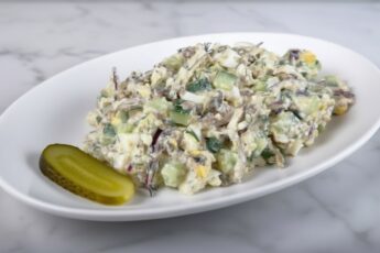 Расскажем о том, как приготовить вкусный салат “Обжорка” с курицей.