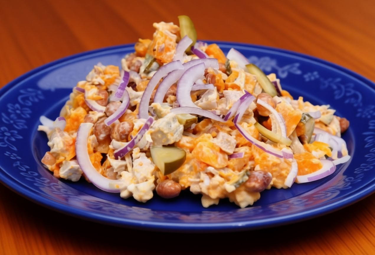 Главное, сделать для салата хорошую заправку. Лучше использовать домашний майонез со специями. Так тыква и остальные ингредиенты приобретут новые вкусовые оттенки.