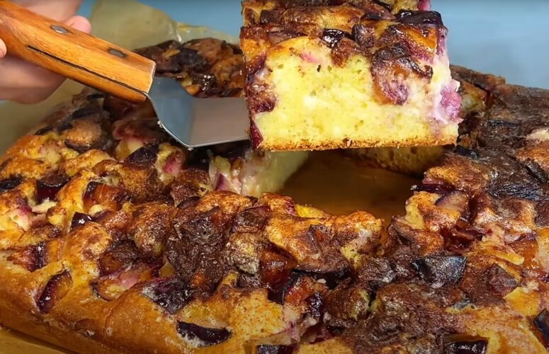 Кремовый пирог со сливами: нежный, сочный, ароматный — и всё это без миксера, весов и лишних усилий!