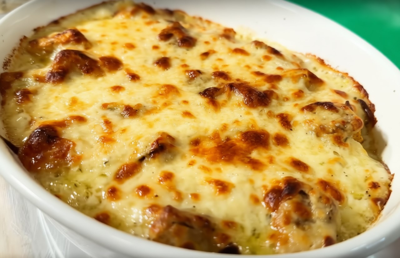 Посыпаем блюдо сыром, накрываем фольгой и выпекаем при 220 градусах 15 минут.