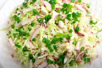 Чтобы сделать заправку, к пяти столовым ложкам растительного масла добавляем соль, черный молотый перец, половину чайной ложки сахара, а также одну чайную ложку горчицы. В конце наливаем 9% уксус.