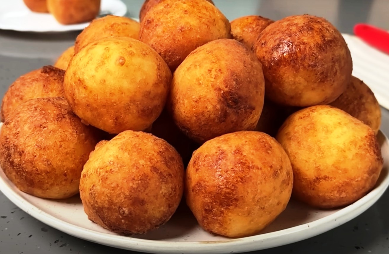 Формуем колобки на рабочей поверхности и опускаем в кипящее масло. Обжариваем шарики со всех сторон.