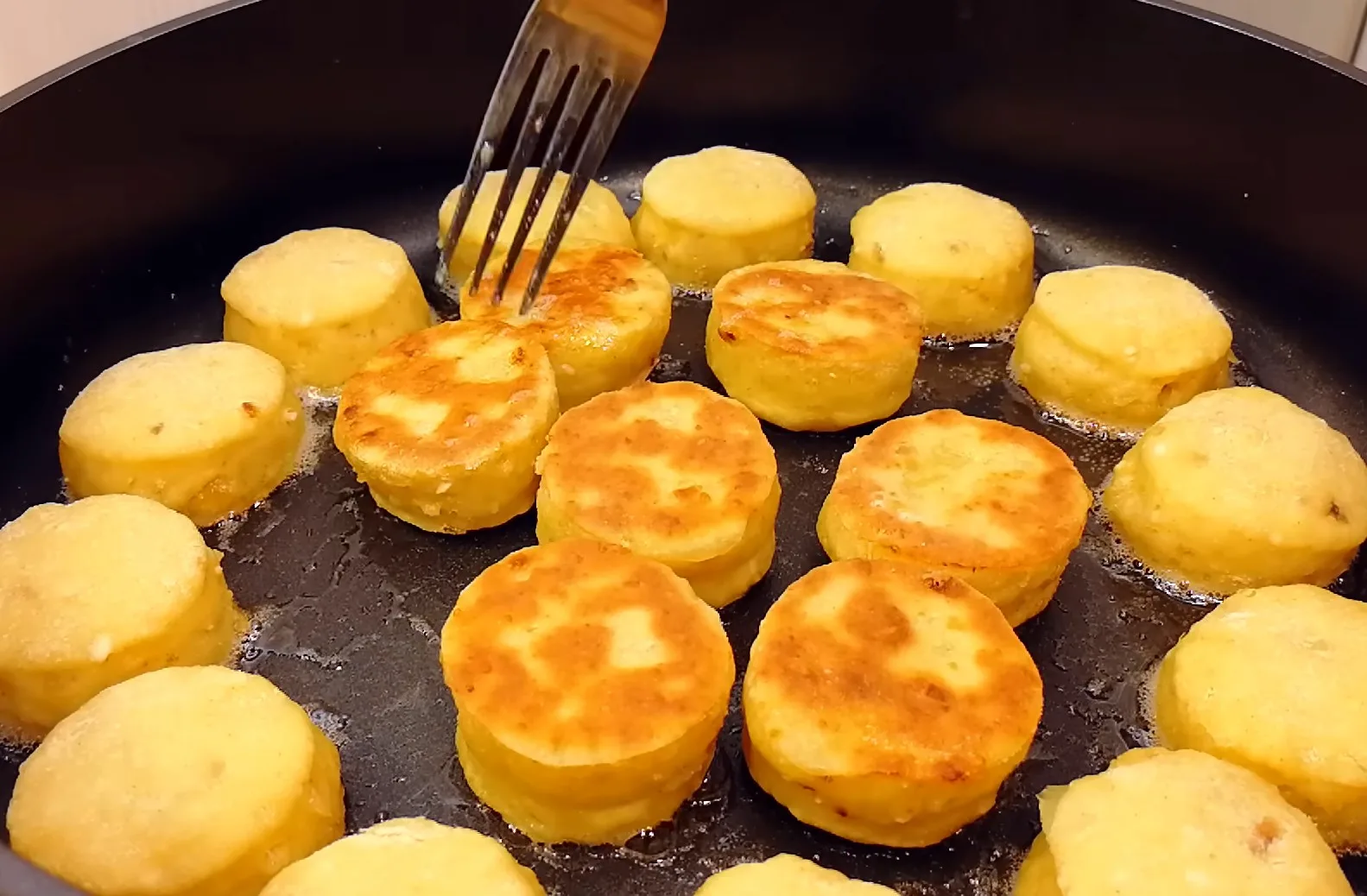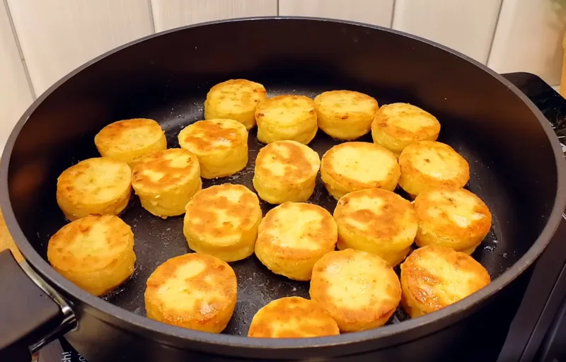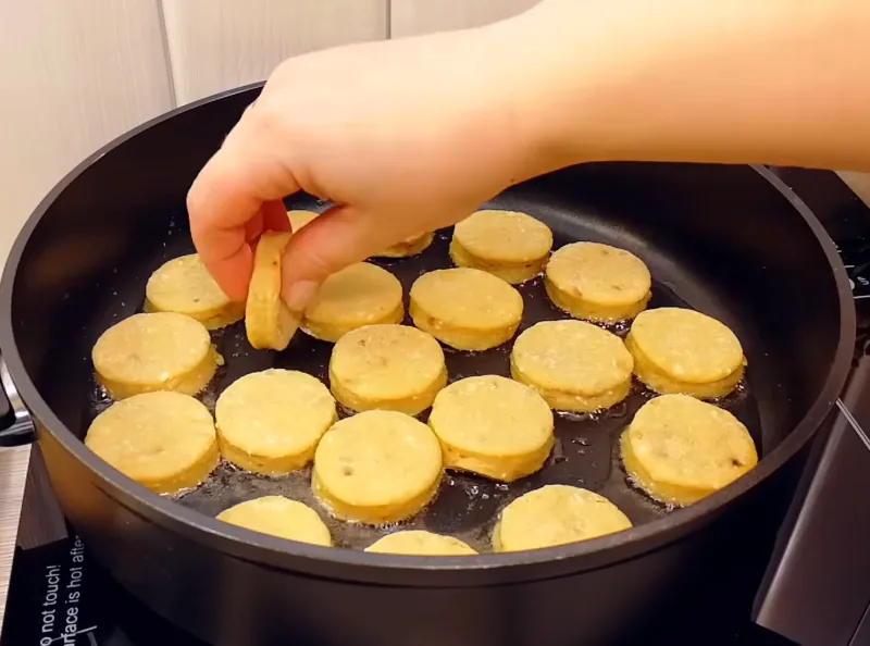 Обжариваем булочки до золотистого цвета с обеих сторон.