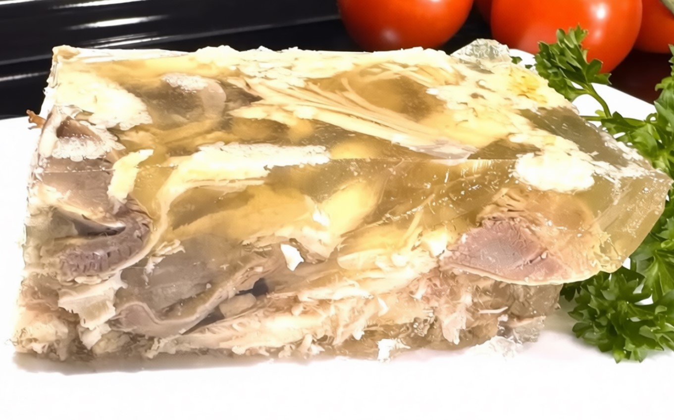 В курином холодце много коллагена. Поэтому при застывании текстура холодца более плотная, чем у свиного или говяжьего аналога. Также куриный холодец имеет более нежный сбалансированный вкус. Мясо хорошо впитывает специи и овощные ароматы.
