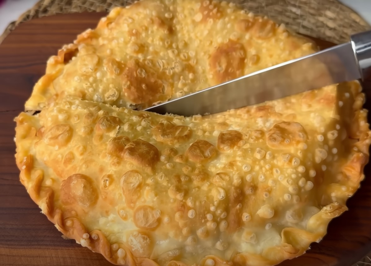 Этот рецепт подойдет тем, кто любит чебуреки, так как пирог слегка напоминает данное блюдо внешне и по вкусу.