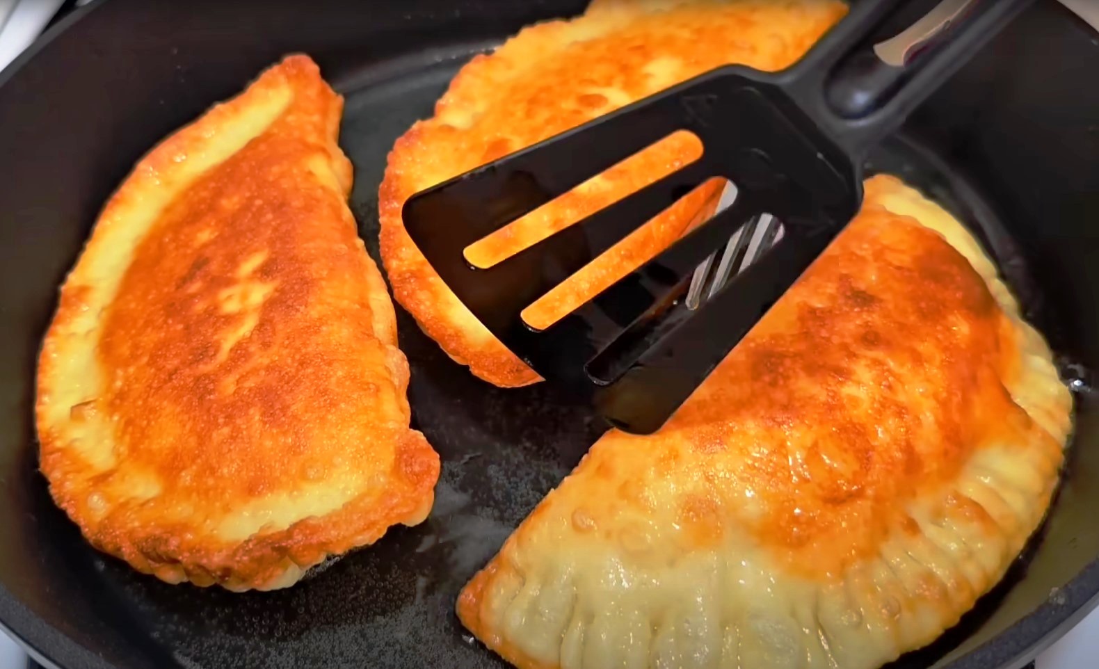 Обжариваем чебуреки с каждой стороны до золотистой корочки.
