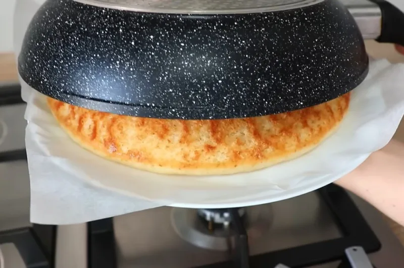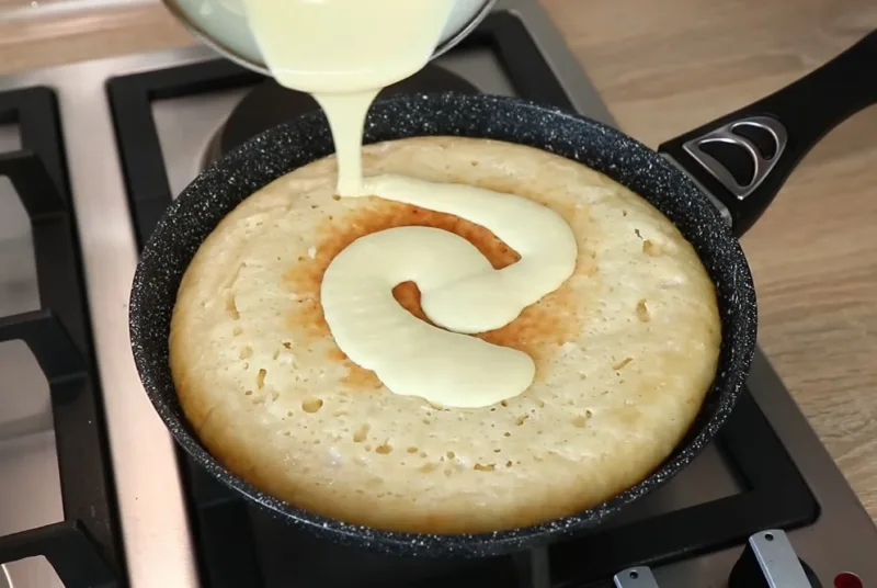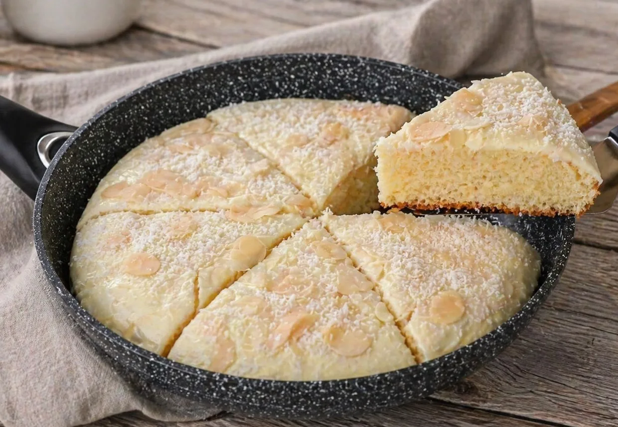 Преимущество десерта заключается в том, что для него не нужно использовать духовку. Бисквит можно испечь на сковороде, без миксера и весов. Этот способ сохраняет пирог пористым и значительно ускоряет процесс приготовления.